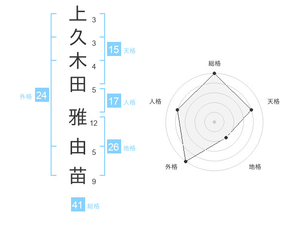 上久木田 雅由苗さんを姓名の画数から五運を鑑定