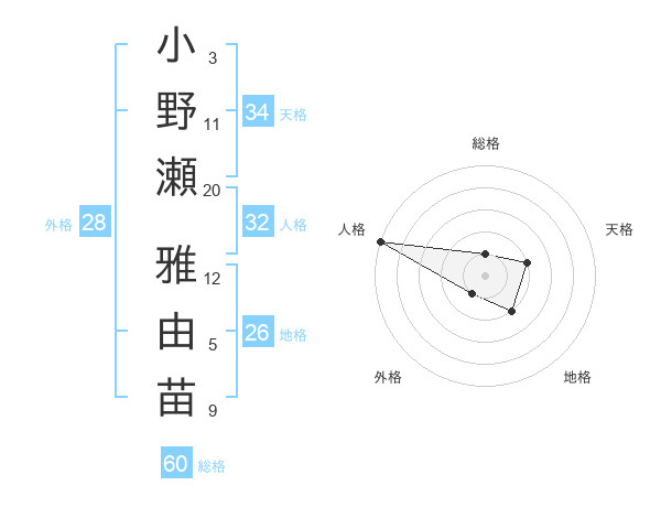 小野瀬 雅由苗さんの総格は60画の1点