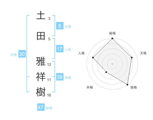 土田 雅祥樹さんの総格は47画の5点!