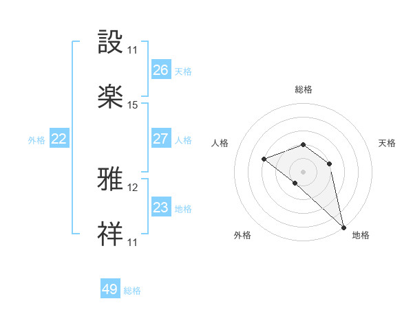 設楽 雅祥さんを姓名の画数から五運を鑑定