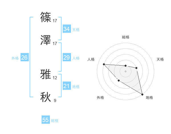 篠澤 雅秋さんを姓名の画数から五運を鑑定