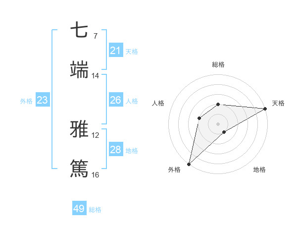 七端 雅篤さんを姓名の画数から五運を鑑定