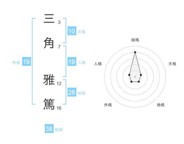 三角 雅篤さんの総格は38画の4点!