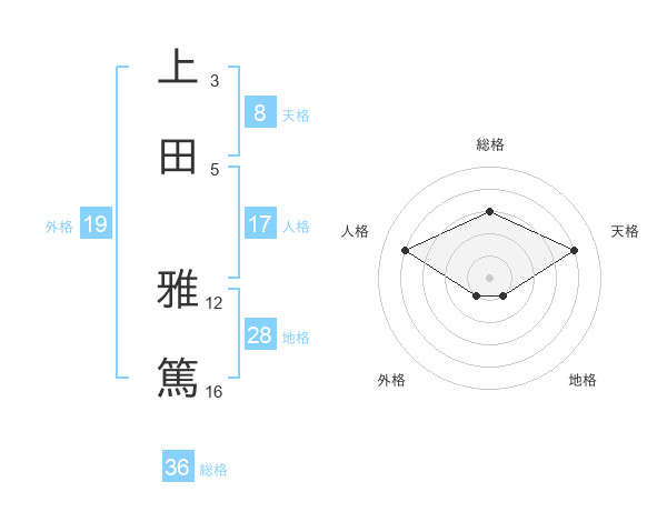 上田 雅篤さんの天格は8画の4点!