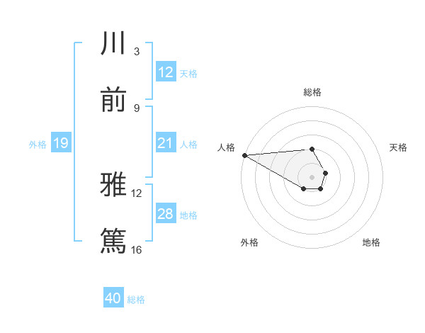川前 雅篤さんを姓名の画数から五運を鑑定