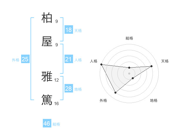 柏屋 雅篤さんの総格は46画の1点!