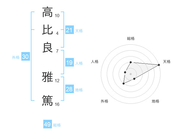 高比良 雅篤さんの天格は21画の5点!