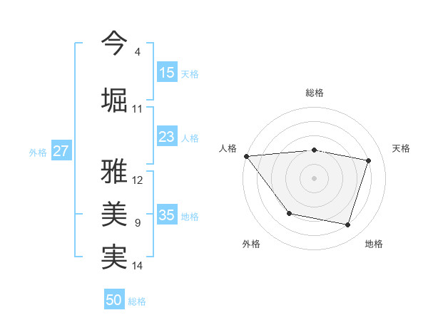 今堀 雅美実さんを姓名の画数から五運を鑑定