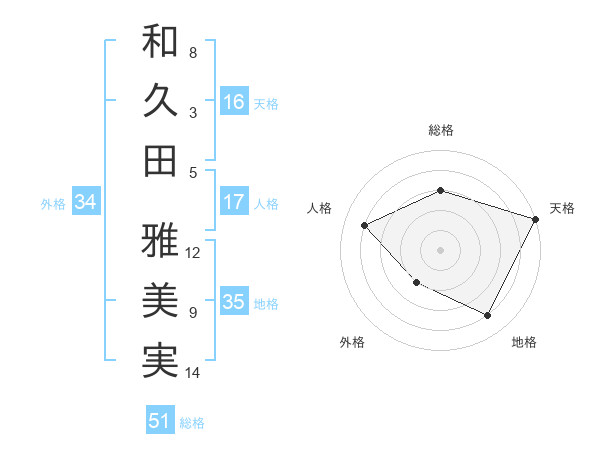 和久田 雅美実さんの総格は51画の3点!