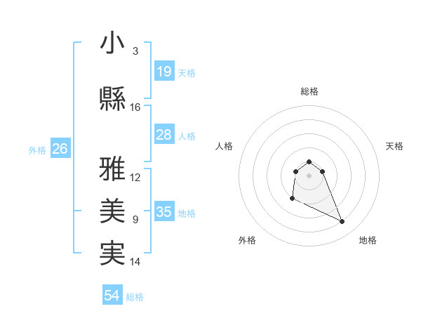 小縣 雅美実さんを姓名の画数から五運を鑑定