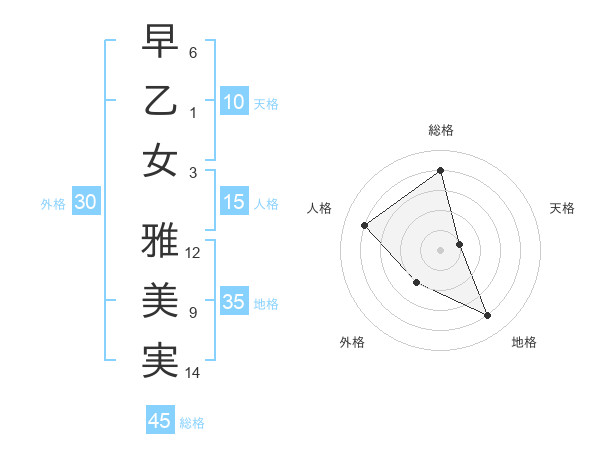 早乙女 雅美実さんを姓名の画数から五運を鑑定