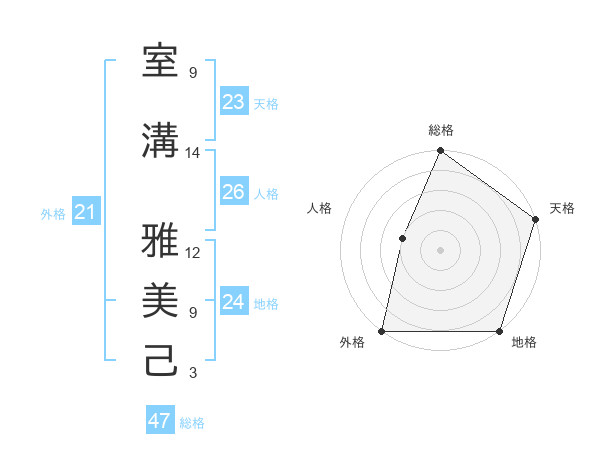 室溝 雅美己さんを姓名の画数から五運を鑑定