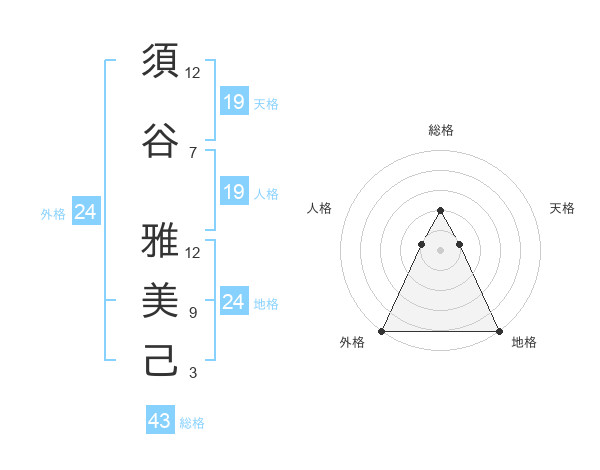 須谷 雅美己さんの地格は24画の5点!