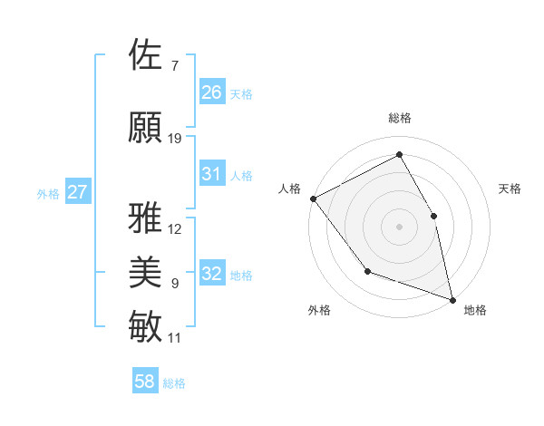 佐願 雅美敏さんを姓名の画数から五運を鑑定