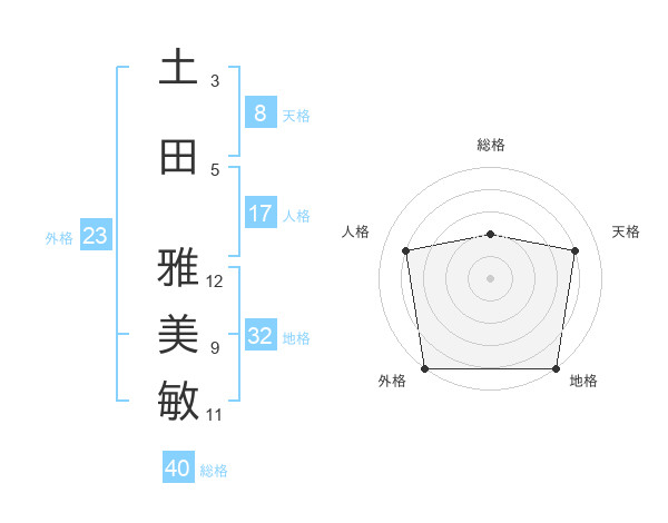 土田 雅美敏さんを姓名の画数から五運を鑑定