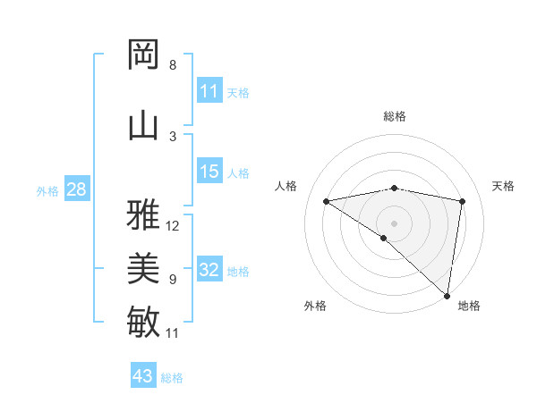岡山 雅美敏さんの総格は43画の2点!