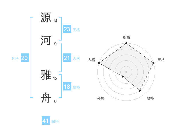 源河 雅舟さんの総格は41画の5点!