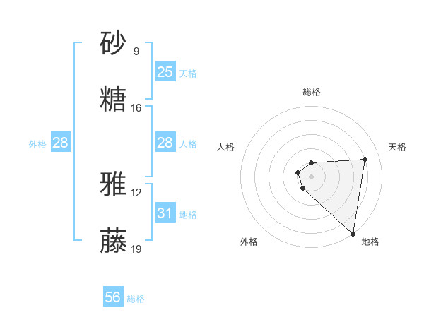 砂糖 雅藤さんの総格は56画の1点!
