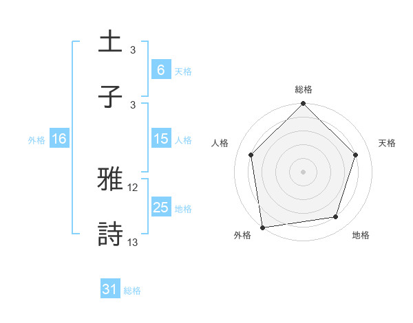 土子 雅詩さんを姓名の画数から五運を鑑定