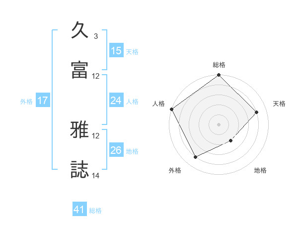久富 雅誌さんの総格は41画の5点!