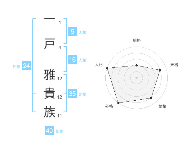 一戸 雅貴族さんを姓名の画数から五運を鑑定