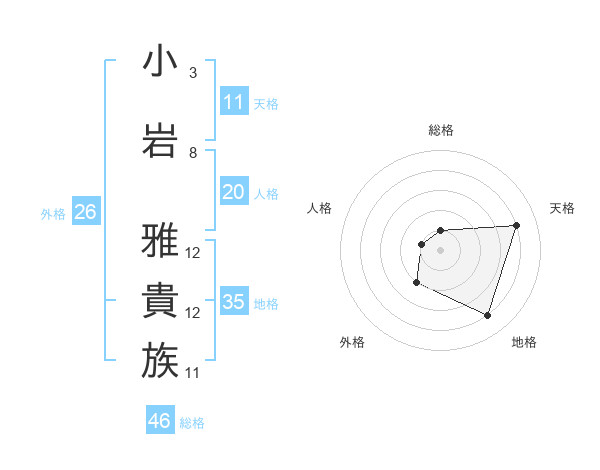 小岩 雅貴族さんを姓名の画数から五運を鑑定