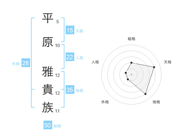 平原 雅貴族さんの総格は50画の2点!