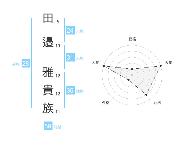 田邉 雅貴族さんの天格は24画の5点!