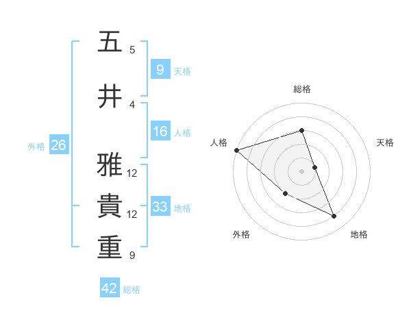 五井 雅貴重さんを姓名の画数から五運を鑑定