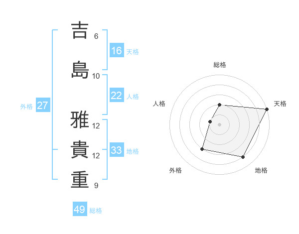 吉島 雅貴重さんを姓名の画数から五運を鑑定