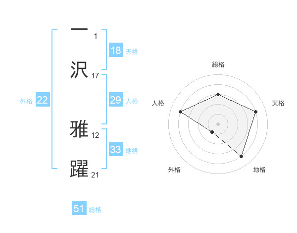 一沢 雅躍さんの総格は51画の3点!