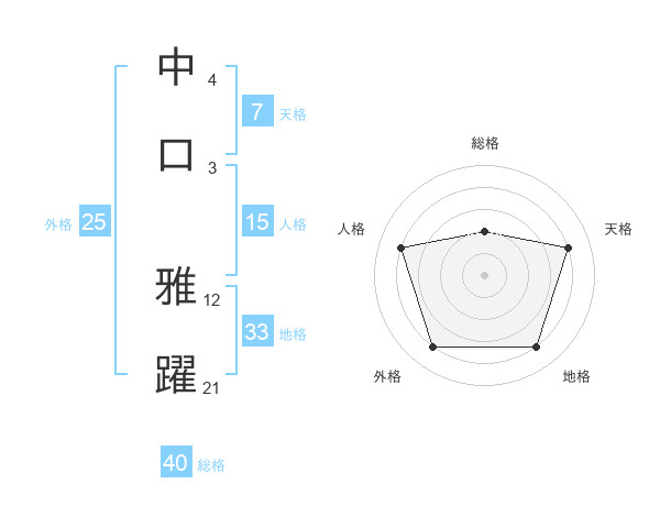 中口 雅躍さんの地格は33画の4点!