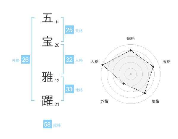 五宝 雅躍さんの外格は26画の2点!