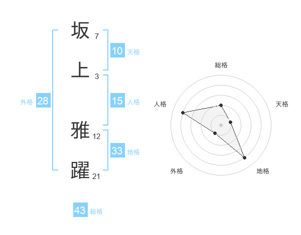 坂上 雅躍さんを姓名の画数から五運を鑑定