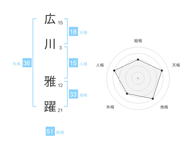 広川 雅躍さんの総格は51画の3点!