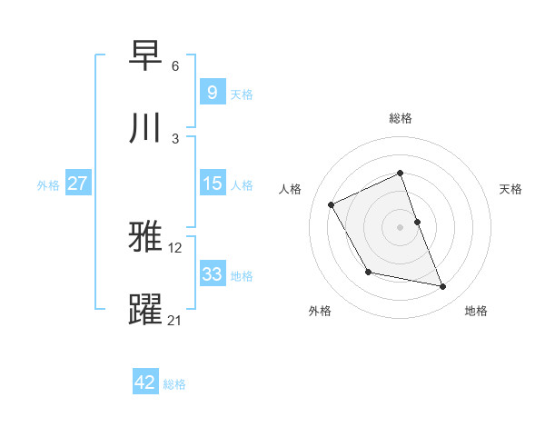 早川 雅躍さんを姓名の画数から五運を鑑定