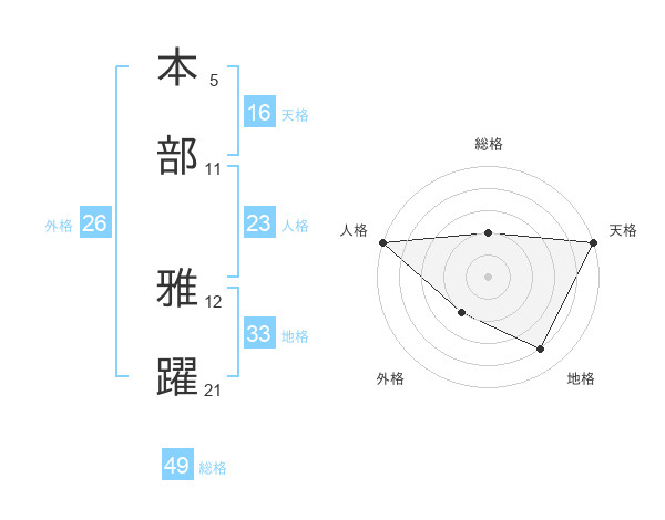 本部 雅躍さんの総格は49画の2点!