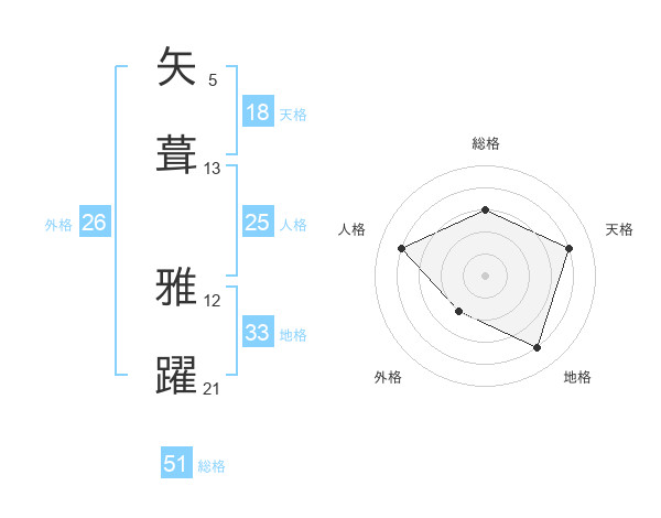 矢葺 雅躍さんの総格は51画の3点!