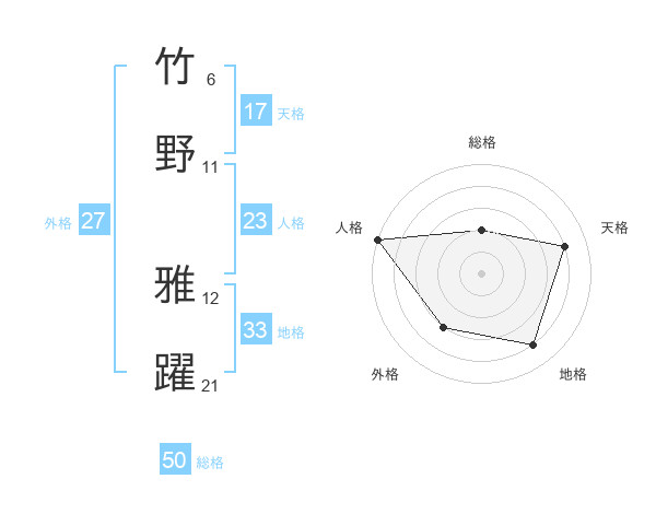 竹野 雅躍さんを姓名の画数から五運を鑑定