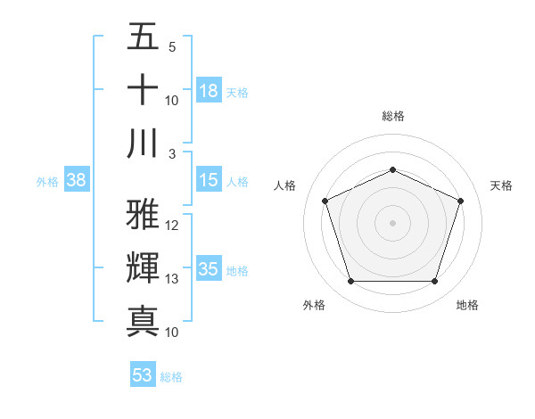 五十川 雅輝真さんを姓名の画数から五運を鑑定