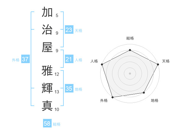 加治屋 雅輝真さんの天格は23画の5点