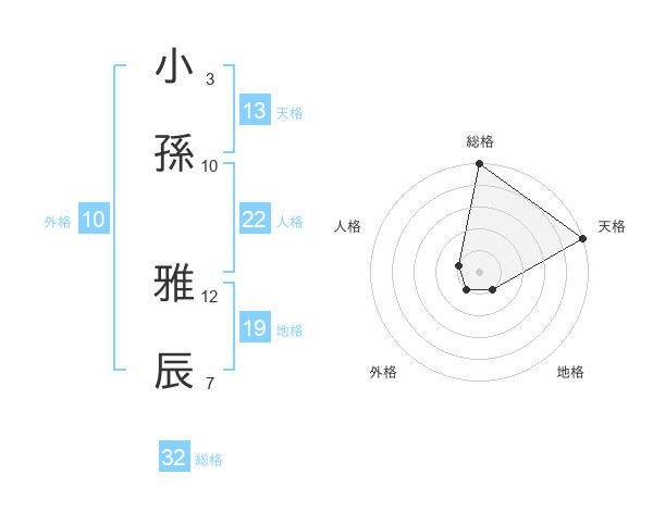 小孫 雅辰さんの総格は32画の5点!