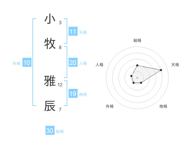 小牧 雅辰さんの天格は11画の4点!