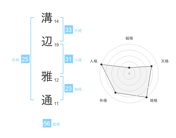 溝辺 雅通さんを姓名の画数から五運を鑑定