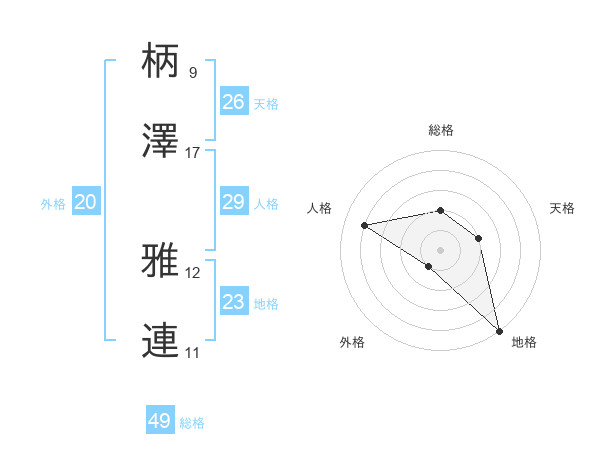 柄澤 雅連さんを姓名の画数から五運を鑑定