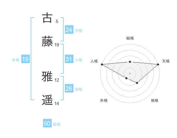 古藤 雅遥さんを姓名の画数から五運を鑑定