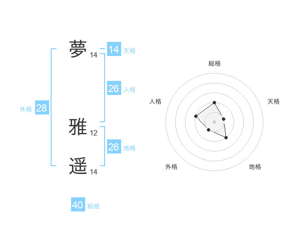 夢 雅遥さんの総格は40画の2点!