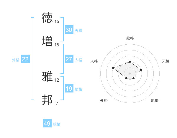 徳増 雅邦さんの総格は49画の2点!