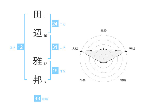 田辺 雅邦さんの天格は24画の5点!