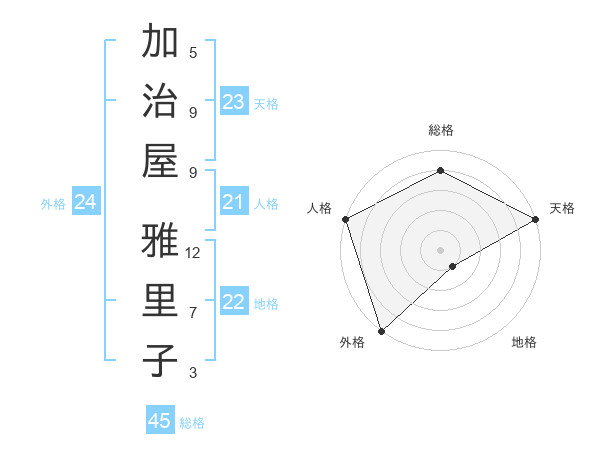 加治屋 雅里子さんの天格は23画の5点